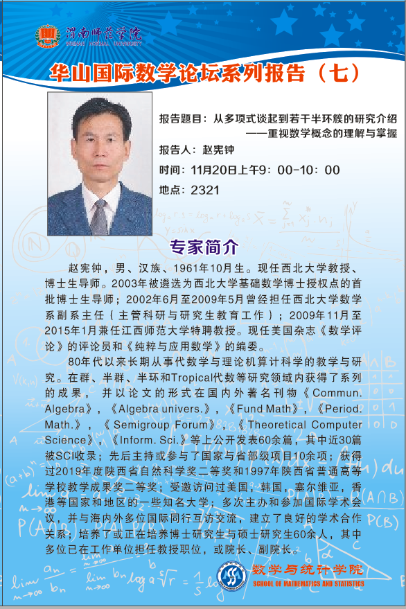报告题目:从多项式谈起到若干半环簇的研究介绍--重视数学概念的理解与掌握