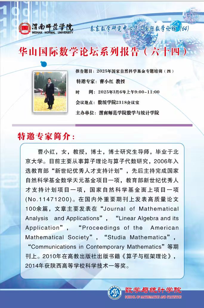 华山国际数学论坛系列报告(六十五)