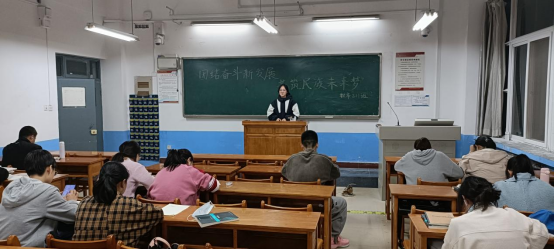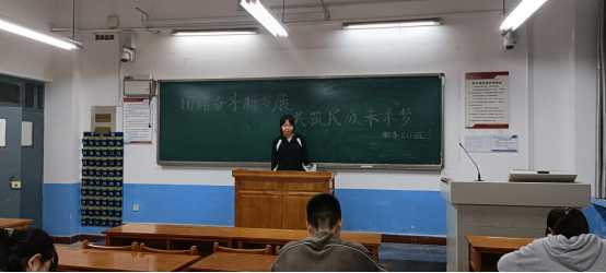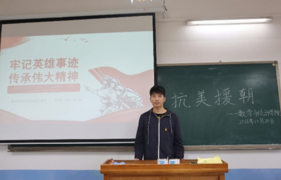 2,团总支书记王淑婷guan'ying发言带领学习抗美援朝精神。