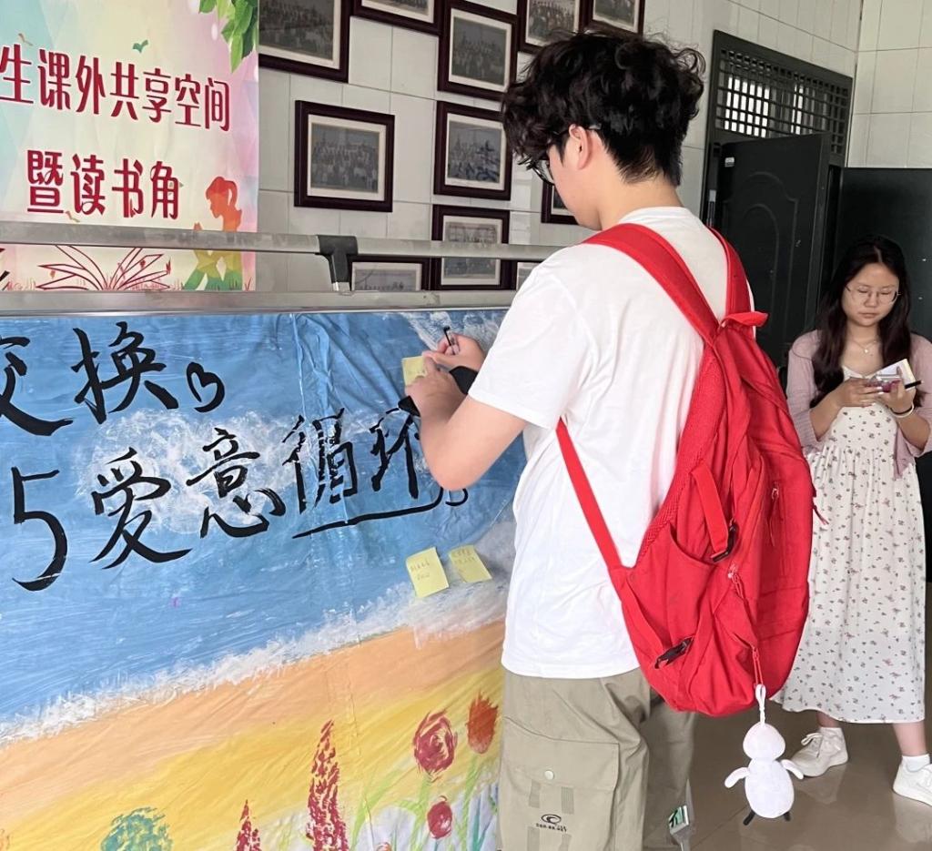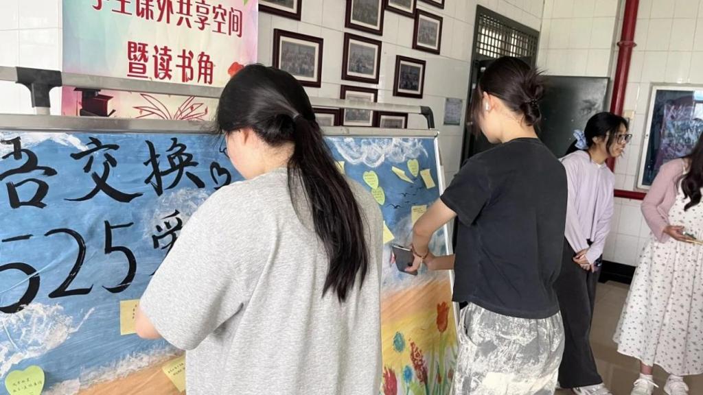 而另一批同学则专注的查看着这些“烦恼便利贴”。他们认真阅读着每一份烦恼,思索片刻后,在便利贴背面写下充满爱意的安慰与实用的建议。便利贴上一句句温暖的话语,如同春日的暖阳,驱散着烦恼带来的阴霾;又似轻柔的微风,抚平内心的焦虑。“烦恼”与“安慰”配对展示,形成了一道道充满温情的风景线。