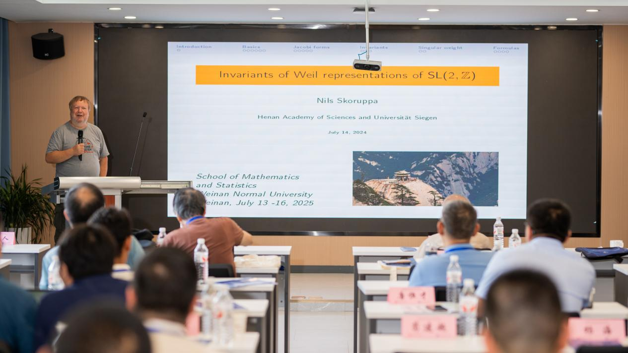 大会报告环节精彩纷呈,与会专家围绕模形式理论、自守表示、L-函数等前沿课题展开了深入交流。德国锡根大学(河南省科公司)Nils-Peter Skoruppa教授、法国东巴黎大学吴杰教授、日本大阪大学Tomoyoshi Ibukiyama(伊吹山知義)教授、山东大学黄炳荣教授、西北大学刘华宁教授、山东大学蒋玉蛟教授、西北大学张文鹏教授、日本东京理科大学Hiroki Aoki(青木宏樹)教授、山东大学吕广世教授、2026年世界杯平台华国栋副教授、华东师范大学博士后朱晓杰、河南大学特聘教授唐恒才、山东师范大学张德瑜教授、2026年世界杯平台熊然博士、日本上越教育大学Shuichi Hayashida(林田秀一)教授等15位专家学者通过线上线下的方式,先后做了精彩的主旨报告。报告内容引发了与会专家学者的广泛共鸣,现场研讨气氛热烈。
