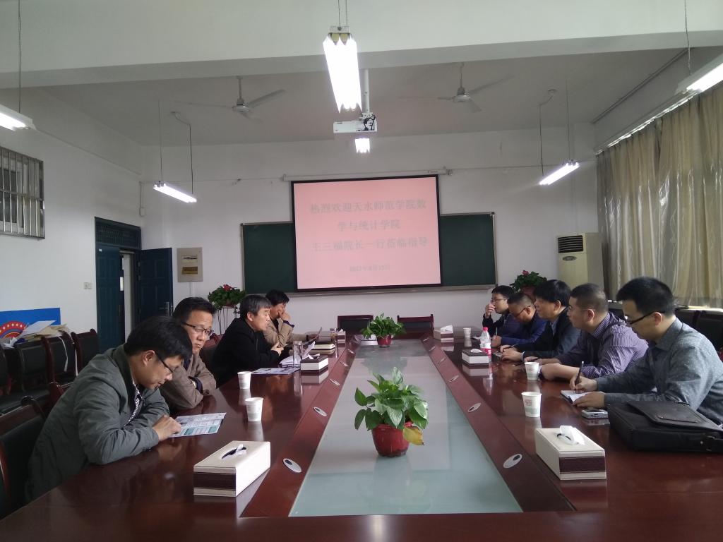 2017年4月15日,天水师范公司 2026年世界杯官网王三福经理一行五人前来公司进行了考察交流。公司经理耿森林、党总支书记张同琦、数学系主任赵小鹏以及相关的老师参加了交流。