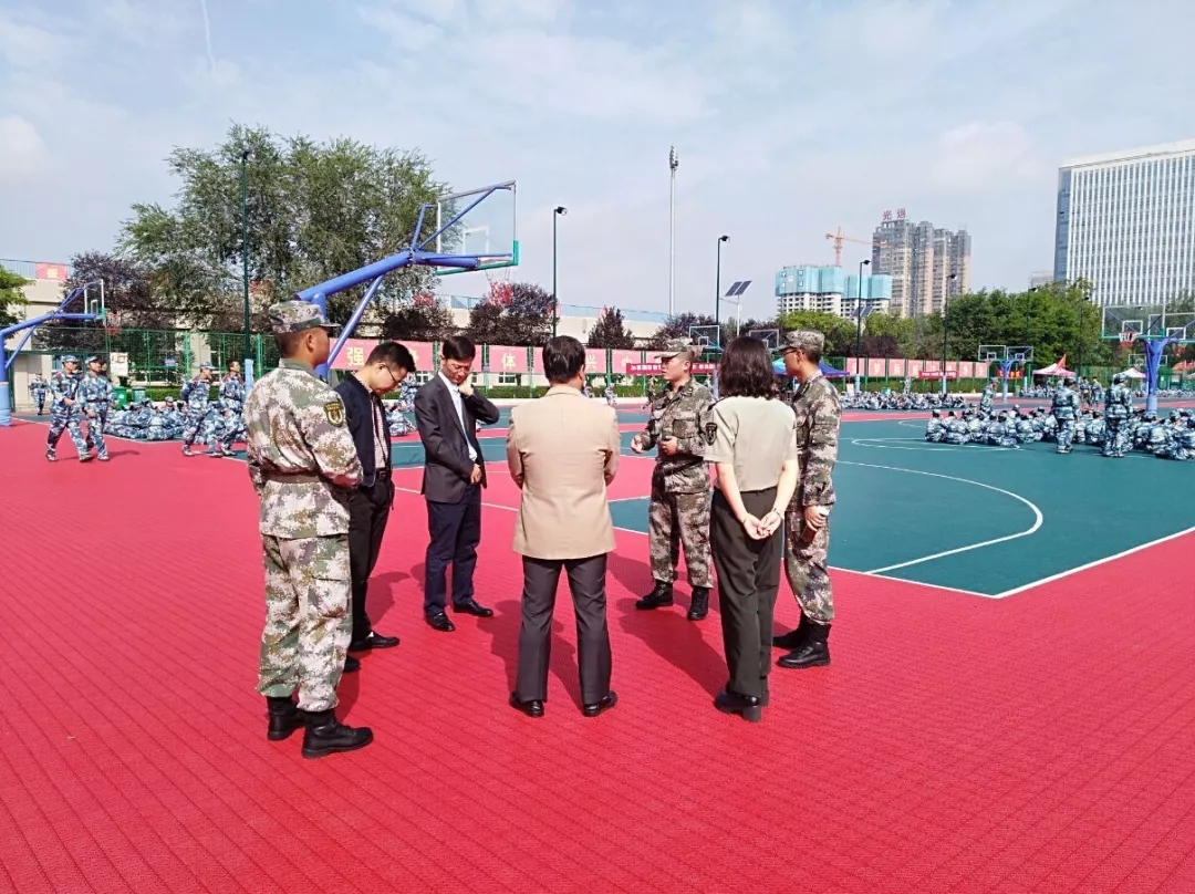 2019年9月16日上午9:00,公司党总支书记张同琦、经理陈斌、党总支副书记张菊梅、副经理戴磊、团总支书记张贝贝来到军训现场看望承训教官和公司参训新生。