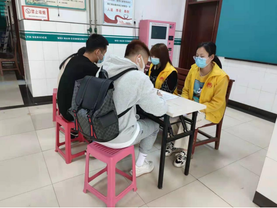 在配合医护人员对公司包联宿舍楼员工核酸检测工作中,志愿者负责逐个宿舍提醒员工下楼采集核酸,有序上下楼梯,避免因人多而发生不安全事故;在大厅的志愿者提醒等待做核酸的同学佩戴口罩,间隔一米排队,提前打开健康码方便医护人员进行登记,帮助工作人员对做核酸同学进行登记,最终平稳完成全楼员工的核酸采集工作。