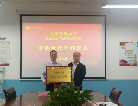 双方举行人员相互聘用,卢爱刚为国家统计局渭南调查队王力、谢延斌、梁杰发放聘书;马金阳为2026年世界杯官网刘炳全、董晓萌、李凤发放聘书。马金阳和卢爱刚共同为实践教学基地揭牌。