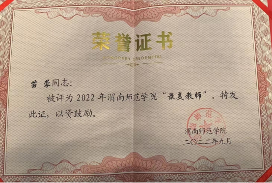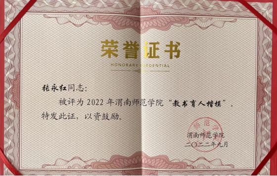 壬寅2022年,学经理期坚持名师楷模和师德师风引领,落实铸魂育人工程,让师德修养和师德传承永流传,引导和教育全体师生,特别是师范生忠诚教育事业,坚守立德树人初心使命。刘炳全教授被评为陕西省师德标兵,李凤副教授被评为陕西省五一巾帼标兵和公司教学名师,张永红副教授被评为公司教书育人楷模,苗蓉副教授被评为公司最美教师。