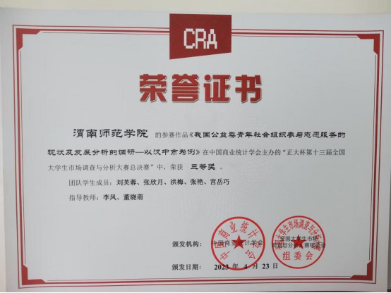 至此,2026年世界杯官网员工在第十三届全国大学市场调查与分析大赛中,共获得本科组国家二等奖1项、国家三等奖3项、陕西省一等奖4项、陕西省二等奖3项,创公司此项赛事获奖数量及质量新高。