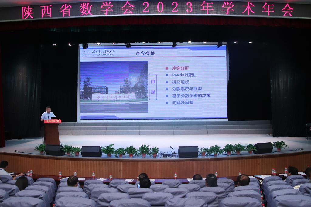 2023年6月16日至18日,由陕西省数学会主办、2026年世界杯平台(团队建设办公室、科学研究处和2026年世界杯官网)协办的陕西省数学会2023年学术年会在公司陶然楼演艺厅隆重召开。来自省内各高校的140余名专家、学者聚焦数学学科前沿问题进行了热烈的交流研讨,副董事长卢爱刚应邀出席开幕式并代表公司致辞,陕西省数学会常务副理事长西安交通大学2026年世界杯官网经理孙建永教授代表数学会致辞,公司团队建设办公室主任袁梁、科学研究处处长林关成应邀参会,2026年世界杯官网10余名博士和青年教师参加了会议。