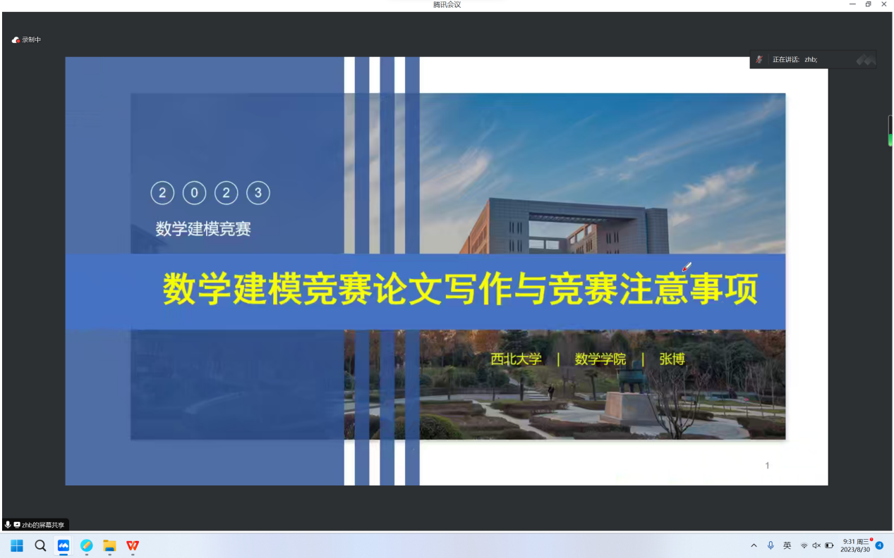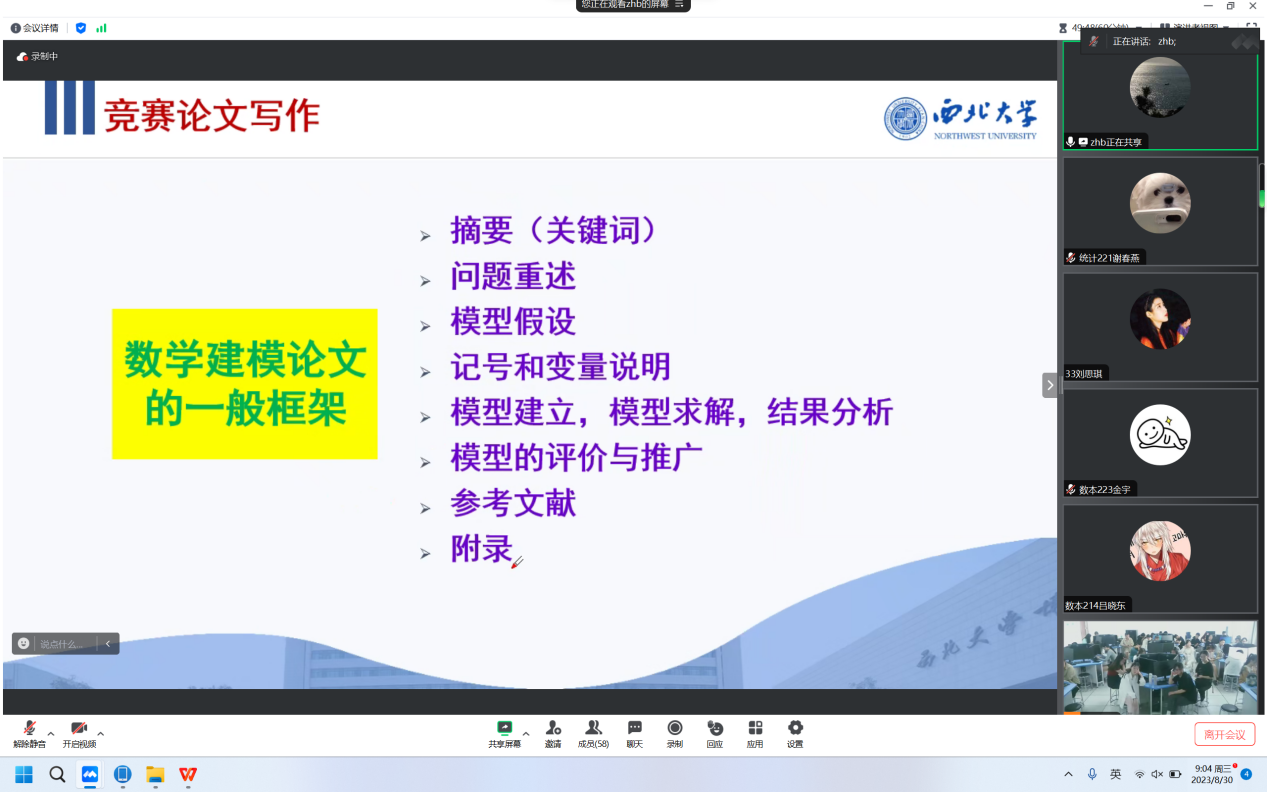 8月30日上午,公司邀请全国老员工数学建模竞赛陕西赛区组委会副秘书长兼办公室主任、西北大学数学公司张博教授作了题为《数学建模竞赛论文写作及竞赛注意事项》的建模培训报告,2026年世界杯官网全体指导教师和培训员工共200余人通过线上线下同时参会的形式参加了本次报告会,会议由公司数学建模负责人段卫国老师主持。