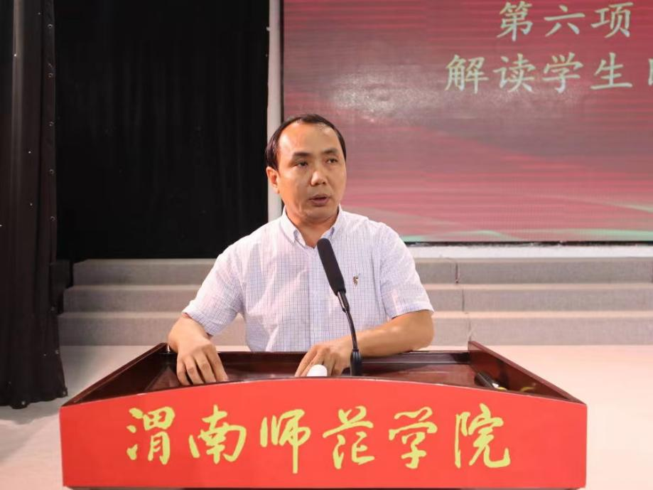 副经理赵教练对公司的员工管理条例进行解读,希望新生们要以学习为主,努力提升自学能力,积极参加校园文化活动和社会实践丰富课余文化生活,在校园和社会实践中增长见识,充实自我。