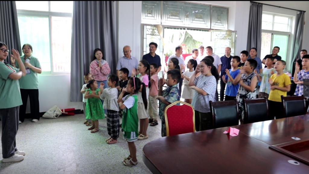 校领导们一到龙门村,就以亲切的姿态深入孩子们之中,带着孩子们一起放飞梦想的纸飞机,并走进精彩纷呈的手势舞课堂。