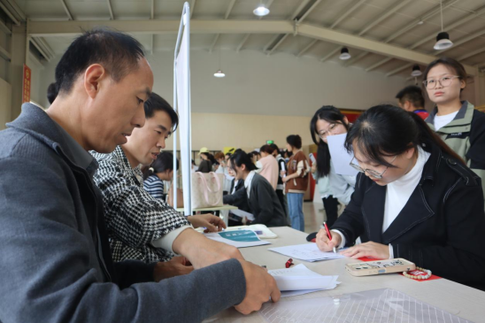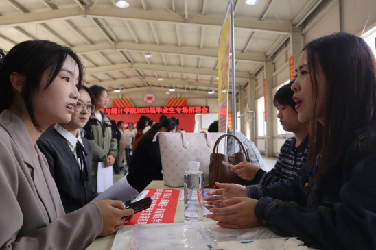 招聘现场气氛热烈,毕业生积极投递简历,并与用人单位深入交流,详细了解岗位信息和需求。