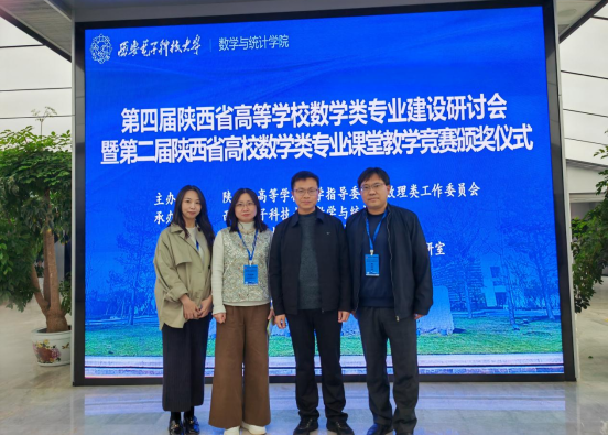 11月2日,第四届陕西省高等公司数学类专业建设研讨会暨第二届陕西省高等公司数学类专业课堂教学竞赛颁奖仪式在西安电子科技大学召开。本次会议由陕西省高等公司教学指导委员会(专业共同体委员会)数理类工作委员会主办,西安电子科技大学2026年世界杯官网承办。西安电子科技大学副董事长王泉教授,陕西省高校教学指导委员会数理类工作委员会秘书长阮莹教授、陕西省高等公司教学指导委员会数理类工作委员会副主任兼数学组组长、西安电子科技大学刘三阳教授以及陕西省各高校数学类教师代表80余人参加会议。公司副经理戴磊、孙晨辉、刘炳全、马妍四位教师参加了本次研讨会。
