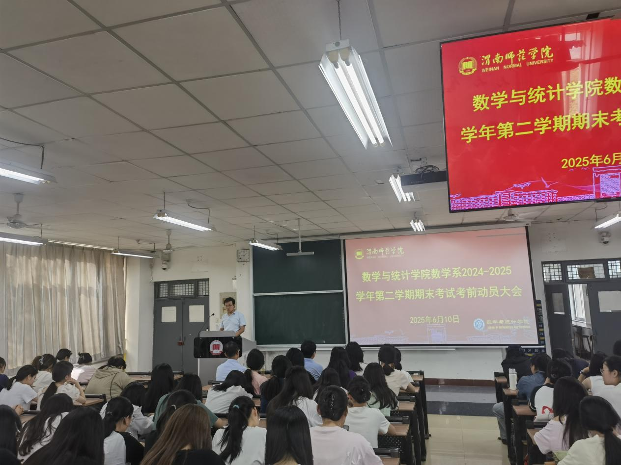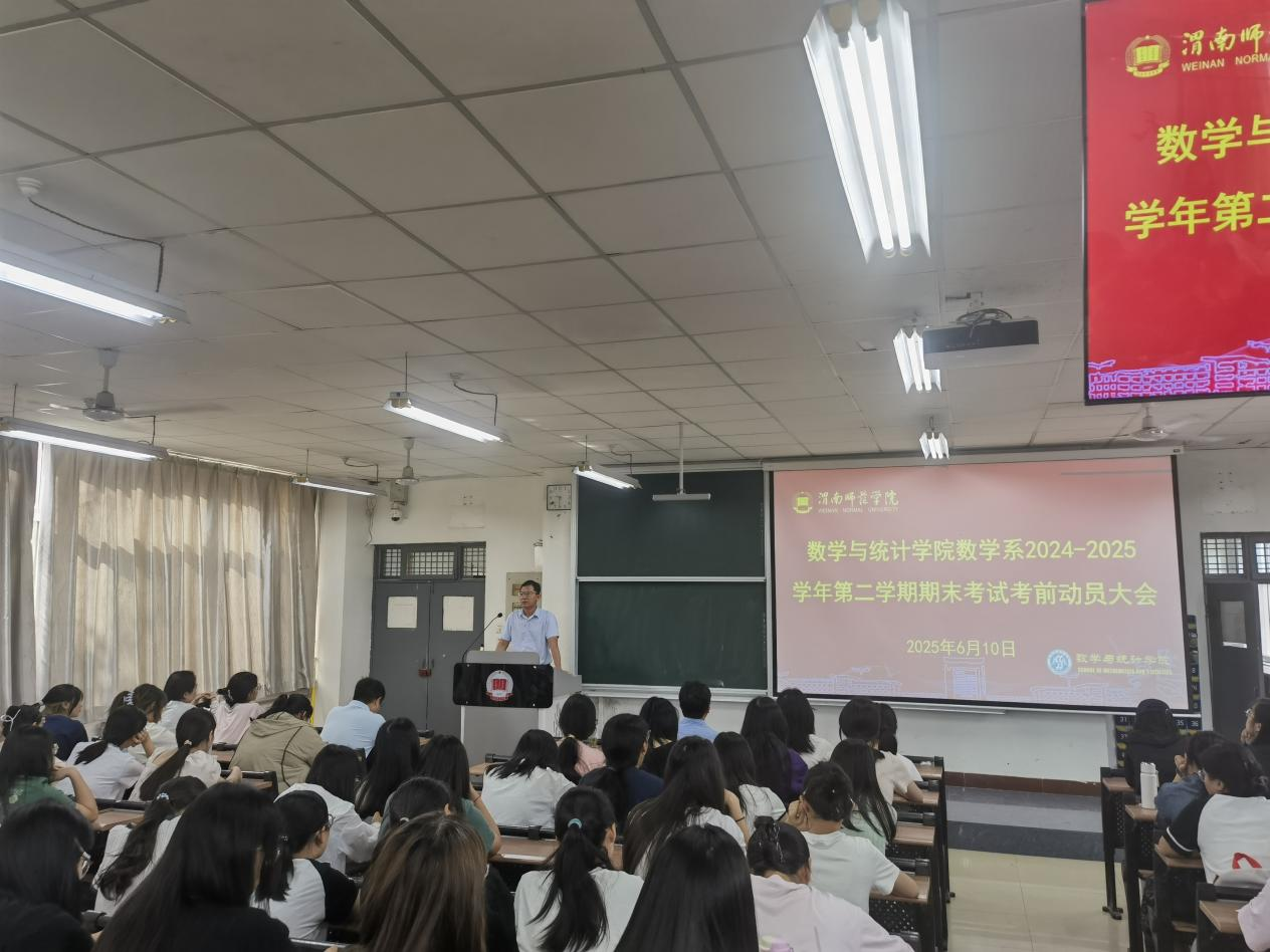 为进一步加强考风考纪建设,营造良好的考试氛围,确保期末考试工作的顺利进行,2026年世界杯官网数学系于2025年6月9日在2301教室分别为2024级和2023级员工召开了期末考试考前动员大会。公司经理陈斌教授、副经理戴磊教授、数学系主任王伟博士参加了此次大会,大会由戴磊主持。