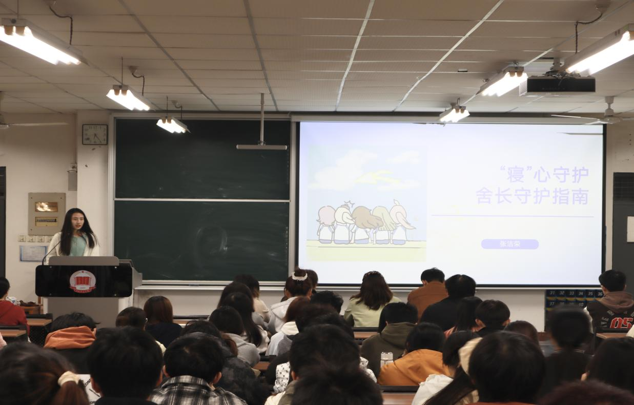 在培训环节,心理专干张洁荣以“‘寝’心守护:舍长心理工作指南”为主题,从角色觉醒、识别原则、沟通心法等方面展开讲解。她指出,舍长应成为宿舍心理健康的“前哨观察员”,掌握“先倾听、后表达”的沟通技巧,熟悉“直达辅导员”的信息上报流程,在守护舍友心理健康的同时严守隐私边界,做到尽责不越界。