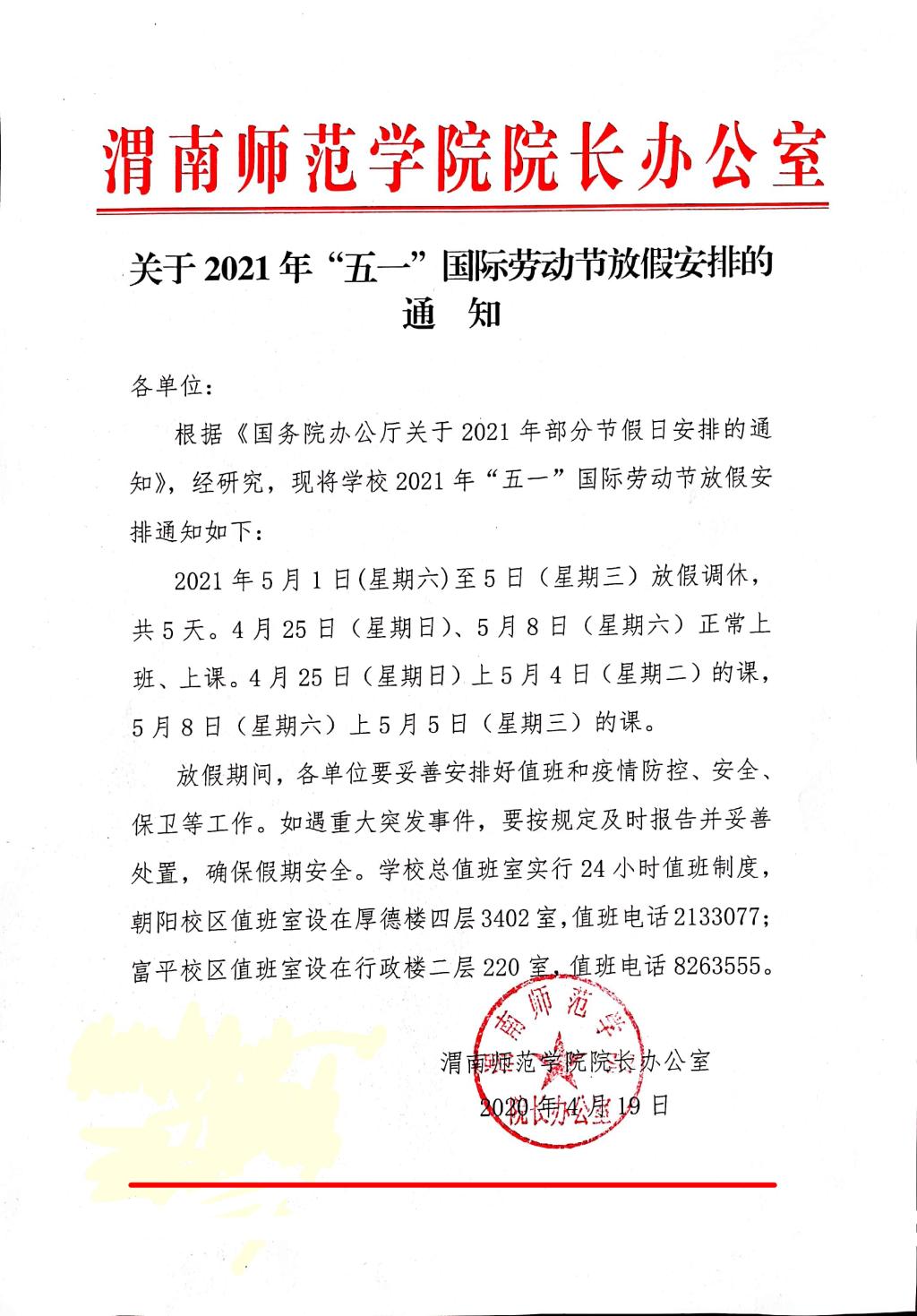 关于“五一”国际劳动节放假安排的通知